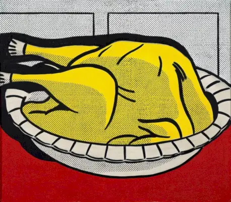 John Currin, kiitospäivä , 2003 (vasemmalla) ja Roy Lichtenstein, Turkki , 1961 (oikealla).Tate/Estate of Roy Lichtenstein