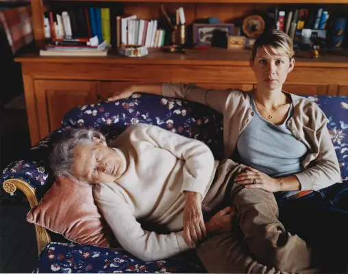 Kaikki pitävät hyvistä nokosista sohvalla suuren kalkkunaillallisen jälkeen, ja tämä rehellinen kuva taiteilijan äidistä ja tyttärestä vangitsee tryptofaanin aiheuttaman torkkuen sukupolvien välisen läheisyyden. Kerran maisemakuvaajana Beahan käänsi keskipisteensä sisätiloihin, kun hänen 89-vuotiaalle äidilleen kehittyi nopeasti dementia ja valokuvaaja dokumentoi hänen äitinsä viimeiset elämänvuodet tässä kuvassa esitetyllä stoaisella mutta runollisella tyylillä.
