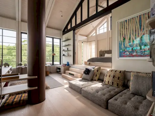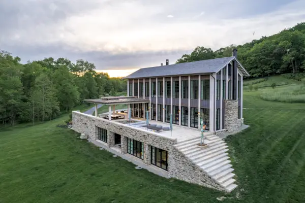 Kun Kerzner osti asunnon vuonna 2017, hän kuvitteli ensin yhden sen kuninkaallisista navetoista omakotikodiksi, mutta lopulta rakensi uuden kodin paikalle, jossa aiemmin oli mökki, hän kertoi. Arkkitehtoninen tiivistelmä vuonna 2022.
