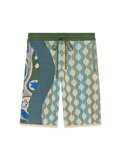 Ahluwalian Katrina-shortsit on neulottu innovatiivisesta Ecotec-puuvillasekoitteesta, joka on valmistettu kierrätetystä kangasjätteestä. Näissä shortseissa on merkin tunnusomaiset rohkeat kuviot silmiinpistävän sinisen ja beigen sävyissä, ja ne tarjoavat boheemia kehää perinteisille neuleille.