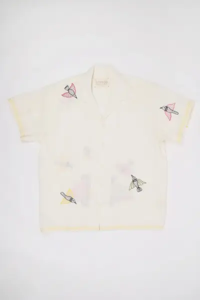 Haragon valkoinen pellavapaita on kunnianosoitus perustajan Harsh Agarwalin kotimaalle, rikkaalle kulttuuriperinnölle ja käsityön käytännöille. Paitaa koristaa Rajasthanista, Intiasta kotoisin oleva Rabari-kirjonta hummingbirdistä, jotka lisäävät hienostuneen ilmeen hienostuneen silauksen.