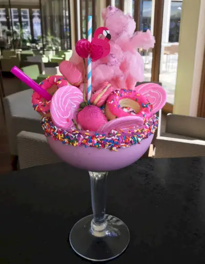 Jos olet mansikkajäätelön ystävä, jolla on affiniteetti ylimääräisiin juomiin, tämä jäätelöcocktail on täydellinen sinulle. Jos et saa sitä JW Marriott Desert Springsissä, jossa se tarjoillaan, voit silti luoda tämän värikkään juoman (joka on saanut inspiraationsa lomakeskuksen ikonisista vaaleanpunaisista flamingoista) jakamaan sitä ystävien kanssa kotona.