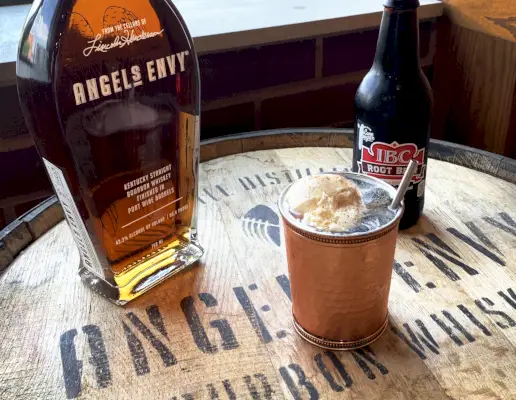 Yhdistä bourbon tai ruis, Averna ja katkerat julep-kupissa. Kaada päälle juuriolut ja sekoita ainesten yhdistämiseksi. Lisää vaniljajäätelö ja koristele kaakaojauheella.