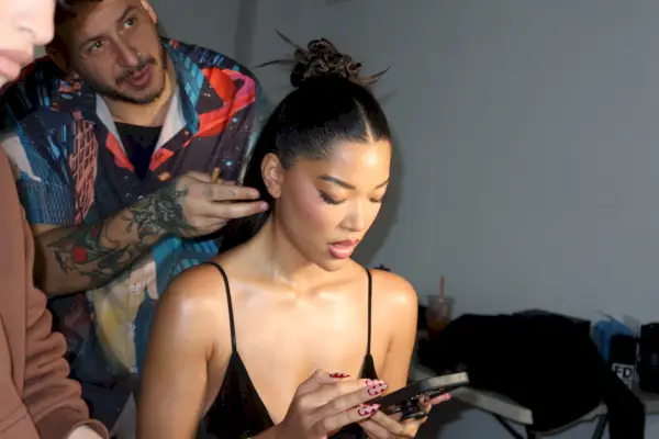 Olemme keskellä New Yorkin muotiviikkoa, ja istun Ming Lee Simmonsin kanssa, kun hän tekee hiuksiaan ja meikkiä itselleen. tmrw lehden kansikuvaukset – yksi monista kansista, joissa olen varma, että näet hänet vuonna 2024. Ming, joka juuri palasi New Yorkiin sen jälkeen pyörteellinen matka Las Vegasiin varten Super Bowlissa , on uupunut eikä halua pukeutua mihin tahansa – ei kannata osallistua kirjekuoren avaamiseen. Tämän kuvauksen päätyttyä Ming Lee on valmis vähintään 24 tunnin lepotilaan.