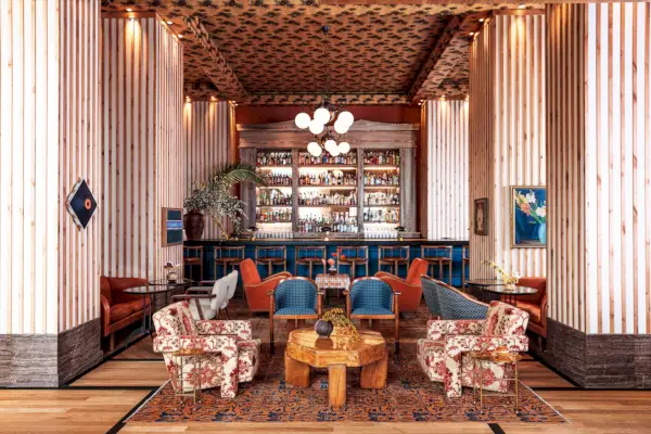 Suunnitteluun suuntautuvat matkailijat ihastuvat Austin Proper -hotelliin, jonka upeat sisätilat ovat antaneet Kelly Wearstlerille, joka sai inspiraationsa paikallisista käsityöläisistä ja käsityöläisistä, sekä Austinin kaupungin tunnelmasta kiinteistön sisustamiseen – ajattele ahdistavaa kovapuuta, antiikkipeiliviimeistelyjä ja räätälöityjä tuotteita. asennukset.