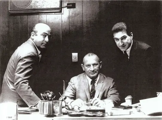 (L-R) Leonard Chess, Marshall Chess, Phil Chess.Shakkiperheen arkisto