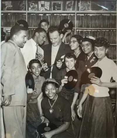 Chess Recordsin perustaja Leonard Chess fanien kanssa.Shakkiperheen arkistot