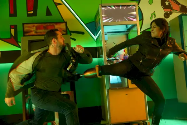 Vaikka se on ansainnut TV-MA-luokituksen, Kaiku ei ole aivan yhtä verinen ja ärhäkkä kuin sen Netflix-edeltäjät. Se on kuitenkin paljon hauskempaa, osittain siksi, että Mayan itsensä voidaan usein nähdä nauttivan olostaan jokaisen pidennetyn lähitaistelun ajan. Hän on loistava tässä, hän tietää sen, mutta sen sijaan, että nauraisi tai nauraisi itselleen kuten Hämähäkkimies, hän vain välähtää pienimmänkin hymyn iskujen välillä. Taistelut eivät ehkä onnistu John Wick väkivaltaisen runouden tasoa, mutta kukaan noissa elokuvissa ei pidä hauskaa, ja täällä saamme nauttia tilapäisestä hauskanpidosta. Kuten herra Wick, Maya on yksinkertaisesti tyylikkäin henkilö huoneessa, johon hän astuu, eikä hänen tarvitse koskaan puhkaista rintaansa sen takia. Hän on kuuro nainen, jolla on jalkaproteesi ja hän aikoo ampua polvilumpioitasi, napsauttaa niskaasi, kytkeä moottoripyörääsi ja ajaa sillä. Mitä muuta hänen on todistettava?