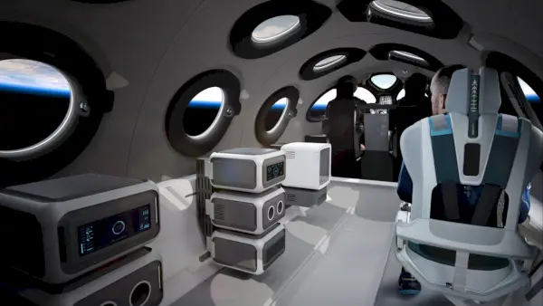 Virgin Galactic -avaruusaluksen hytti hyötykuormakokoonpanossaVirgin Galactic