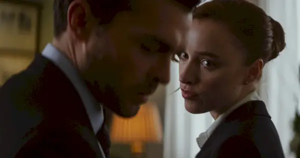 Alden Ehrenreich Luken roolissa ja Phoebe Dynevor Emilynä Fair Playssa.Netflixin luvalla