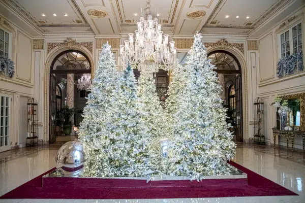 Tämän vuoden Plaza-hotellin puut ovat kaikki valkoisia ja punaisia. Puiden valkoiset himmeät kärjet on peitetty keinotekoisilla karpalon oksilla tässä maagisessa aulan näytössä. Tämä on Plazan pakollinen nähtävyys, mutta varoita, että se on erittäin kiireinen ja pääsy saattaa olla rajoitettu vain hotellin vieraille (ellet käy ennen klo 10.00 tai klo 22.00 jälkeen, kun se on avoinna yleisölle).