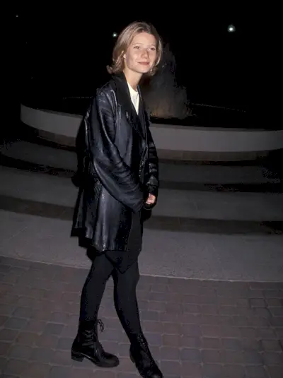 Paltrowin varhaisimmat punaisen maton päivät olivat aina arkipäiväisempiä, jopa silloin kun hän osallistui oman elokuvansa ensi-iltaan, kuten tapahtui tämän ylisuuren nahkatakin ja taistelukenkien parin kanssa Hollywoodin ensi-iltaa varten. Liha & Luu .