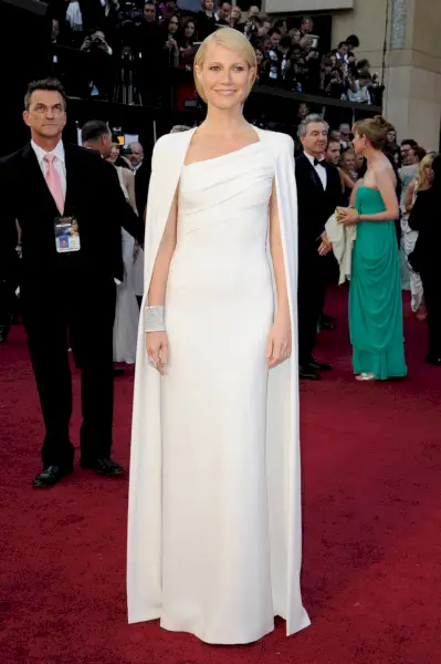 Paltrowin mukaan tämä Tom Fordin viittamekko oli ensimmäinen (ja ainoa) mekko, jota hän kokeili ennen vuoden 2012 Oscaria. Hänen pitkäaikainen stylistinsa Elizabeth Saltzmanin valitsema muotoilu oli osa Fordin syksyn 2012 mallistoa, mutta Paltrow piti siitä, että siinä oli vintage-tunnelmaa. Näin kuvan Jackie O:sta valkoisessa mekossa, jossa on viitta, ja siitä on jo jonkin aikaa, kun kukaan ei ole käyttänyt viittaa, suoraan sanottuna, paitsi Superman. hän sanoi suunnittelusta, mikä auttoi popularisoida viittapukuja punaisella matolla .