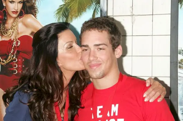 Janice Dickinson poseeraa poikansa Nathan Fieldsin kanssa vuonna 2008