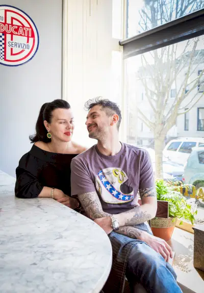 Debi Mazar ja Gabriele Corcos Brooklyn-ravintolassaan The Toscan Gunissa.