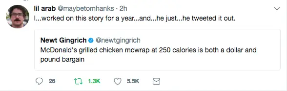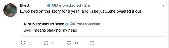 Minä…työskentelin tämän tarinan parissa vuoden… ja… hän vain… hän twiittasi sen.