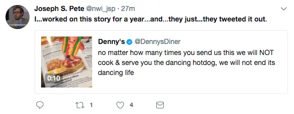 Mutta ensimmäinen twiitti levisi kauimpana, ja nyt siitä twiitistä on tullut myös meemi. Twitterissä olevat ihmiset – erityisesti toimittajat – ovat lainanneet satiirisia, leimattuja ja erityisen hauskoja tai arkipäiväisiä uutisia ja twiittejä Twitterissä Sextonin viruskommentilla.