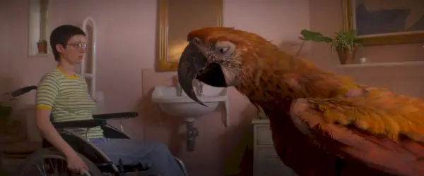 Lola Petticrew kuoleman kanssa arapapukaijan muodossa (ja ääninä Arinzé Kene) tiistai .A24:n luvalla