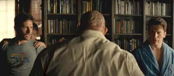 Tämän kuvan eniten arvostelee Dave Bautista, joka kolmesta entisestä WWE-maailmanmestarista, jotka tällä hetkellä näyttelevät suuren budjetin elokuvissa, on se, joka todella osaa näytellä. Yksi kohokohdista Koputa mökille katselee Big Daven taitavasti käsittelevän roolia, joka tuntuu kuin se olisi kirjoitettu John Goodmanille, lempeän jättiläisantagonistin Leonardin rooliin. Hän on iso, hiljainen ja tasainen mies, joka pystyi erottamaan sinut hikoilematta. Hän haluaa kovasti ei satuttaa sinua, mutta Jumala ei ole antanut hänelle paljon valinnanvaraa. Leonardia ja hänen kohorttejaan ajavat visiot, joita he eivät voi selittää (vai ovatko he?), pitääkseen kolme viatonta ihmistä panttivankina metsässä, ja heidän jatkuvat anteeksipyynnöt ja epäilyt tekevät niistä vain pelottavampia. Elokuvan varsinaiset pääosat ovat Eric (Jonathan Groff, Hamilton ja Andrew ( Ben Aldridge , Spoileri varoitus ), onnellinen pariskunta, joka viettää puolet elokuvasta tuoleihin sidottuna. Andrew'lla on hyvin ansaittu siru olkapäällään elämänsä syrjäytymisestä ja seksuaalisuudestaan johtuvasta pahoinpitelystä, ja hän suojelee kiivaasti rakkauden ja turvallisuuden keitasta, jonka hän on rakentanut Ericin ja heidän tyttärensä Wenin (tulokas Kristen Cui) kanssa. Hän on erittäin tietoinen siitä, kuinka sotkuinen ja julma maailmamme on, siinä määrin, että hän pystyy hylkäämään mahdolliset apokalypsin merkit 2000-luvun elämän arkipäiväisinä traumoina. Kaikki hyvä on täällä, hänen kanssaan, nyt. Onko mikään näiden seinien ulkopuolella säästämisen arvoinen? Andrew tarjoaa suurimman osan elokuvan tekstuurista, sillä muut hahmot, erityisesti hänen pyhä kumppaninsa Eric, ovat vain toiminnallisia.
