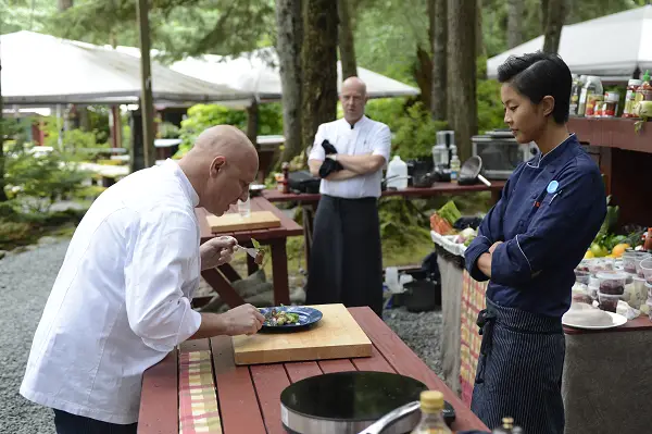 Tom Colicchio, Stefan Richter ja Kristen Kish mukana Huippukokki: Viimeisen mahdollisuuden keittiö vuonna 2013.Bravo