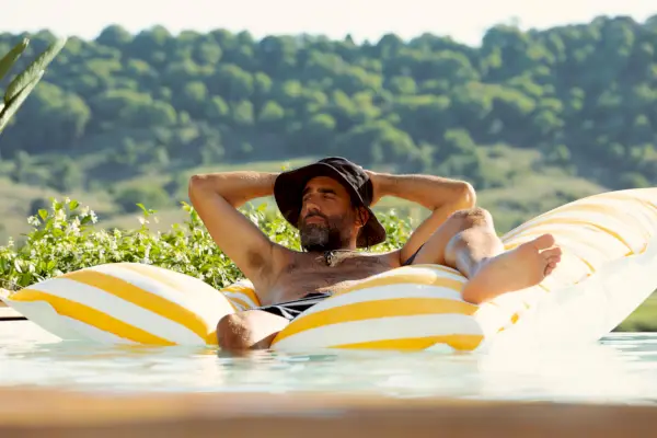 Ja tässä tuli tämä käsikirjoitus ihmisistä, jotka yrittävät selviytyä surustaan. Olin eräänlainen peli sellaiselle tiedolle, joka joutui päähäni, ja ajattelin vain, että hahmo oli hauska, mielenkiintoinen ja arvaamaton. Pidin siitä, että hän oli kaveri, joka ilmoittautui vapaaehtoisesti tähän hyvinvointiretriittiin ja vietti siellä kaiken aikansa vastustaen sitä, ja ajattelin, No, se on mielenkiintoinen kaksijakoisuus. Kuinka voin pelata sitä?