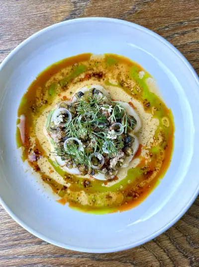 Saavutettuaan mainetta ponnahdusikkunana pandemian aikana, Crudo e Nudosta on sittemmin tullut meren antimien ystävien Santa Monican perusruoka. Vastuullisuus ja paikallinen hankinta ovat toiminnan perusta, ja ruokalista vaihtuu päivittäin sen mukaan, mitä saalis on. Saapuessaan vieraat tekevät tilauksen pienen mutta kauniin ravintolan tiskillä ennen kuin he istuvat tilavalle puiselle patiolle, josta on näkymät Main Street -kadulle. Vaikka ruokalistalta löytyy aina uusia luomuksia, joitain yhtenäisiä suosikkeja ovat tonnikalapaahtoleipä, kaviaarinachot ja herkkä pallaksen crudo.