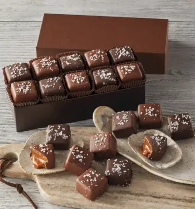 Tämä ihastuttava valikoima gourmet-suklaata sisältää käsintehtyjä maito- ja tumma suklaaneliöitä, joissa on sekä klassisia että ainutlaatuisia makuja, kuten ranskalainen kerma, karamelli, vaahtera fudge ja maapähkinävoi. Lisäksi nämä ovat gluteenittomia ja kosherisia.