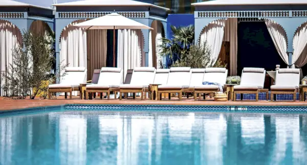 Park MGM:ssä sijaitseva NoMad Las Vegas tarjoaa asiakkailleen boutique-tyylistä majoitusta Stripin sydämessä. Allas sijaitsee hotellin neljännen kerroksen yksityisellä katolla, joten asiakkaat voivat nousta alla olevan hälinän yläpuolelle, kun he nauttivat auringosta ja siemailevat jotain vahvaa. Odota marokkolaisvaikutteista muotoilua, jossa eloisat laatat, monimutkainen arkkitehtuuri ja kauniit siniset sävyt ovat keskeisessä asemassa. Ohut altaan lepotuolien sijaan vierailla on ilo levätä pehmustetuilla rottinkituoleilla.
