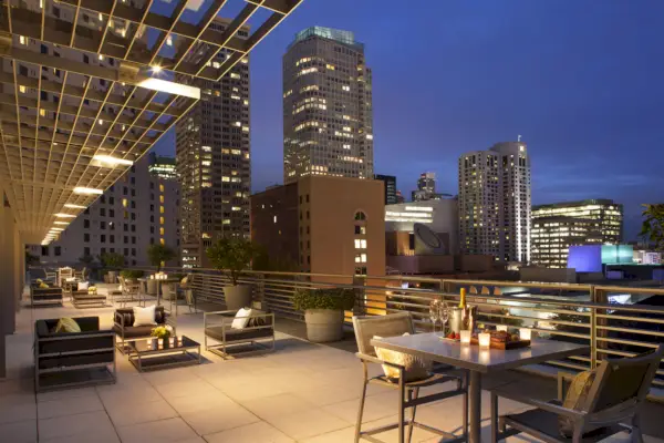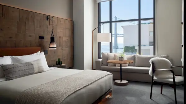 336 huonetta ja sviittiä on sisustettu enimmäkseen syvän bluesin ja neutraalin sävyin, ja niistä kaikista on näkymät joko keskustaan tai San Franciscon lahdelle. Hotelli, joka on osa Marriottia, on varustettu kuntokeskuksella, ravintolalla, baarilla ja JCB Tasting Loungella erityistä viininnäytteenottokokemusta varten. on vain noin tunti Napaan. Sijainti on myös loistava, sillä köysiradan pysäkki on aivan hotellin aulan etuoven ulkopuolella.