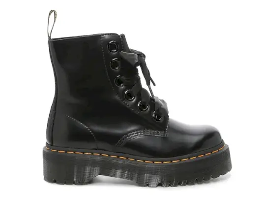 Älä unohda, että Doc Martens -vaihtoehtoja on *niin*, kuten tämä kiiltävä nahkapari, jossa on tyylikäs korkea alusta ja pehmustettu pohjallinen, jossa on liukastumista estävä pohja.