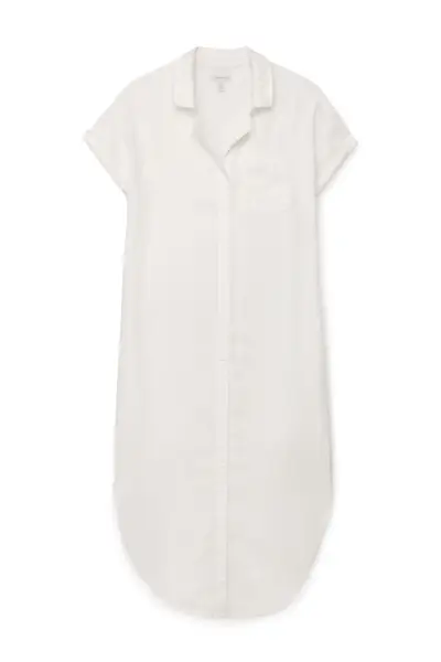 Valkoinen puuvillamekko on epävirallinen kesäpuku, ja tämä v-pääntieinen lyhythihainen paitamekko käy läpi kaikki laatikot. Hienovarainen puhvihiha lisää naisellista tunnelmaa lookiin.