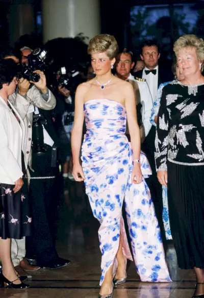 Seuraavan Australian kuninkaallisen kiertueensa aikana Diana kuvattiin Catherine Walkerin vaaleanpunaisella ja sinisellä kuviollisella mekolla, jota hän käytti safiiri- ja timanttikorujen kanssa.