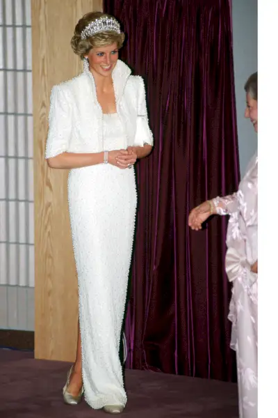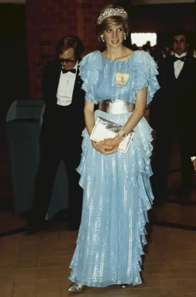 Australiassa pidetyssä gaalatapahtumassa Diana käytti David ja Elizabeth Emanuelin mukautettua yhden olkapään satiinista valmistettua iltapukua. Mutta se oli hänen smaragdi- ja timanttipääpanta, joka todella varasti show'n; se oli alun perin art deco -tyylinen choker, jonka Patialan maharani antoi Queen Marylle vuonna 1911.