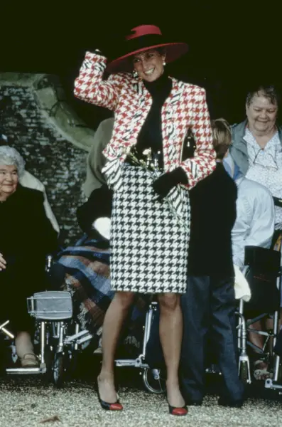 Ei yksi, joka pelkää värejä tai kuvio, Diana syleili molempia osallistuessaan prinsessa Eugenien ristiäisiin punamustaisessa koiranhammaskuvioisessa Moschino-puvussa, jota hän käytti punaisen hatun, mustien käsineiden ja kaksiväristen pumppujen kanssa.