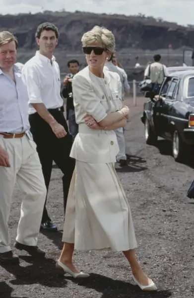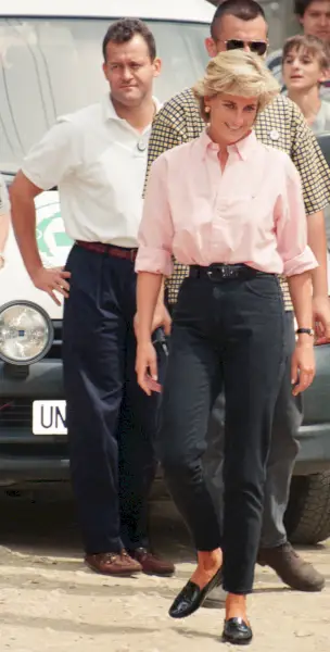 Vieraillessaan maamiinojen uhrien luona Bosnia ja Hertsegovinassa Diana käytti mustia farkkuja, joissa oli vyö, ja vaaleanpunainen napillinen paita. Matka, joka merkitsi hänen viimeistä virallista kihlausta ennen Pariisin auto-onnettomuutta, joka vei hänet myöhemmin samassa kuussa, auttoi lisäämään tietoisuutta tarpeesta kieltää maamiinojen käyttö.
