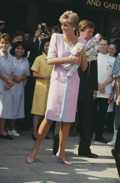 Vieraillessaan loukkaantuneiden sotilaiden Royal Star & Garter -kodissa Lontoossa Diana valitsi Catherine Walkerin yksinkertaisen vaaleanpunaisen ja lila-reunuksen mekon, jota hän käyttäisi uudelleen Pakistanissa, Kalkutassa ja Egyptissä.