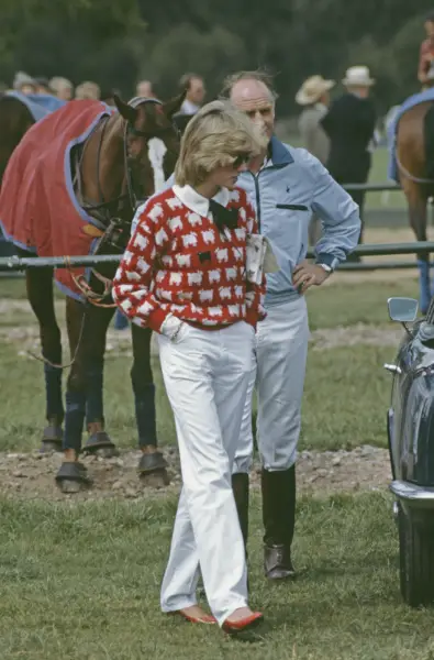 Yksi varhaisimmista esimerkeistä Dianan vapaa-ajan tyylistä, tuleva prinsessa osallistui poolo-otteluun vain viikkoja ennen häitään leinipin keltaisissa haalareissa, joita hän käytti kukkakuvioisen puseron, espadrille-sandaalien ja aurinkolasien kanssa.
