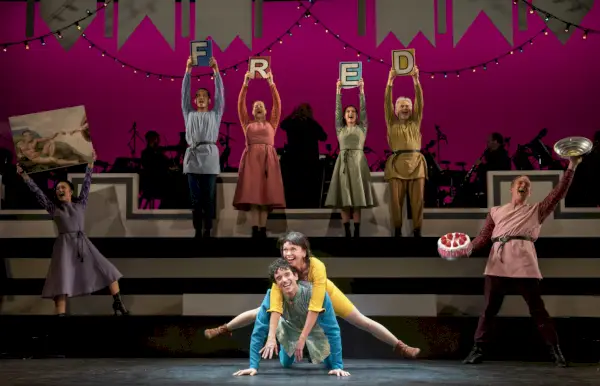 Tai sukeltaa: Winnifred heittäytyy vallihaudoihin ja ui linnaan etsimään prinssiään, näkymättömänä. Kun Foster vedetään lavalle, hän on levässä tippuva näy: ankerias puvussa, raivoissaan majava sotkeutuneena pullaansa. Sellainen tyttö, jota ihmiset kutsuivat poikapojaksi, Winnifred on ylenpalttisen kulttuuriton ja hänellä on rajaongelmia: johdantokappaleessa Ujo , hän karjuu otsikon sanaa, keilaten kaikkia. Se on siellä hänen nimessään; puolet hänestä on pehmeää ja naisellista: Nalle. Toinen puolisko on Fred. Hän osaa nostaa painoja, laulaa kuin satakieli ja juoda gallonaa olutta. Jopa nykypäivän yliherkkyydellä materiaalin sukupuolistereotypioiden käännös on söpöä, ei hätkähdyttävää. Mary Rodgersin musiikki ei keksi uudelleen pyörryttävää, jazz-vaikutteista tyyliä, jonka hän peri isältään Richardilta, mutta yhdistettynä Marshall Barerin viekkaisiin leiriteksteihin, partituurissa on lempeä kumouksellinen panos.