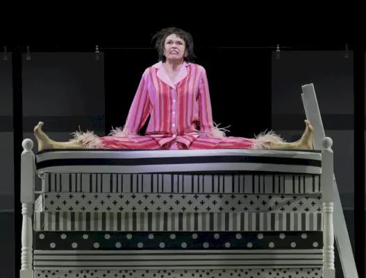 Joten Foster ei ole siellä yksin, mutta on vaikea huomata ketään muuta, kun Winnifred hölmöilee hellästi The Swamps of Homesta tai kamppailee löytääkseen mukavan paikan vuodevuoreltaan yhä kiihtyneempien vääntymien kautta. Tähti siitä lähtien, kun hän Charlestonissa nousi Broadwayn ystävien sydämiin noin 22 vuotta sitten Täysin moderni Millie , Foster on täydellinen fyysinen koomikko ja laulaja elvyttämään roolia, joka teki Carol Burnettin kuuluisan. Foster ei tarvitse urakehitystä; jos Patja ulottuu isompaan paikkaan, hänellä on jo seuraava keikka: ihmisten leipominen lihapiirakoiksi klo Sweeney Todd .