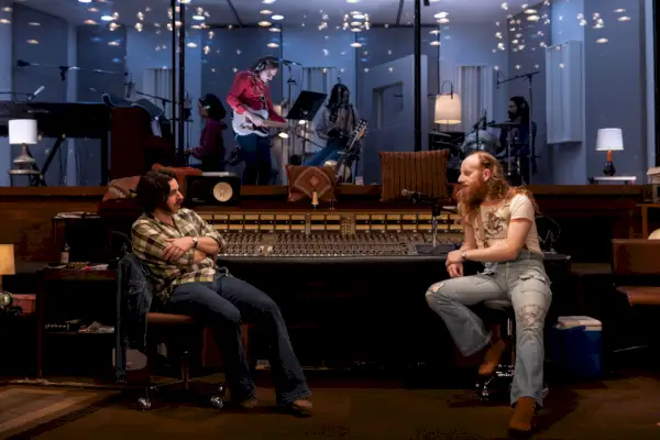 Syynä tähän pitkittyneeseen prosessiin on levy-yhtiö, joka kolminkertaistaa budjetin, mikä on yllätys, johon Peter tarttuu tilaisuutena uppoutua nerokseensa. Siitä huolimatta albumin muotoa ja gestaltia ei koskaan paljastettu. Kuulemme katkelmia ja joskus kokonaisia kappaleita, kun yhtye viimeistelee ja viimeistelee niitä – helliä, kaipaavia tai katkeria balladeja toivosta ja epätoivosta, jotka on kirjoittanut Will Butler. Arcade Firen entinen jäsen, hänen sanoituksensa ovat aidosti retroa ajattomuuteen asti, runsaat viittaukset valoon ja yöhön ja tuuleen, sydänsärkyä ja eteenpäin menoa. Emme edes tiedä mikä albumin nimi on. (Lopua kohden Reg ehdottaa hävytöntä otsikkoa, josta hänen tyttöystävänsä unelmoi.) Tämä pidättely ei ole kritiikkiä. Todellinen tarina, draama, ei ole se, saavatko he valmiiksi levyn tappamatta toisiaan tai itsensä; se on hitaasti palava paljastus kvintetin selittämättömästä syntymän ja tuhon tanssista, kuinka he voivat harmonisoitua ilahduttavassa refräänissä repiessään toistensa kurkkua. Stereofoninen ei oikeastaan ole juoni; siinä on tunnelmaa. Kyllä, haluamme Dianan vapauttavan itsensä Peteristä. Toivomme, että Reg ei käytä koksia ja noudattaa luonnollista ruokavaliota. Sydämeni on Simonia ja hänen perhettään kohtaan.
