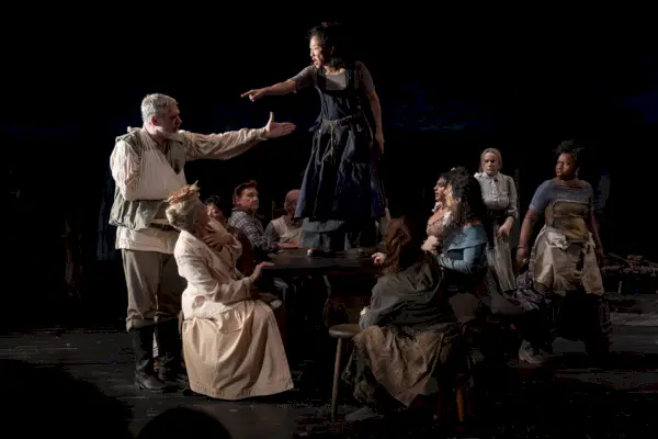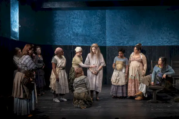 Tämä johdanto ei tarkoita sitä, että Lucy Kirkwoodin Welkin on nuhjuinen. Hän on rohkea kirjailija, joka kaivautuu esimoderniin feminismiin ja naisvihaisuuden moraaliseen mätänemiseen sisäellisellä, hätkähdyttävällä tavalla. Enkä missään tapauksessa väitä, että New Yorkin ensi-illan pääosin amerikkalaiset näyttelijät olisivat huonompia; he ovat kuudentoista ammattilaisen päätä kääntävä ryhmä. Hyvin spesifisen englanninkielisen ympäristön (1759, East Anglia) ja ohjaajan Sarah Bensonin – epäilemättä huolellisesti – omaksuman aksenttittoman laululähestymistavan välillä on vain viive. Lukuun ottamatta australialaista twangia täällä (Nadia Malouf) ja skotlantilaista brogue siellä (alkuperäinen brittiläinen näyttelijä Tilly Botsford), näyttelijät puhuvat ilman hellyyttä luokasta riippumatta. (Poikkeus: Mary McCann näyttelee posh-damea, jolla on piilotettu menneisyys.) Tämän valinnan takana on ihailtava läpinäkyvyyden tavoite. Kirkwood itse kannustaa monimuotoisuuteen kaikkialla, missä teos esitetään, ja Georgian maaseudun Englannin tunnollinen virkistys saattaa mullistaa sen poliittisen ajankohtaisuuden. Welkin : naisten erottaminen tahdonvapaudesta, heidän ruumiinsa tuntemisesta ja oikeudenmukaisuudesta.
