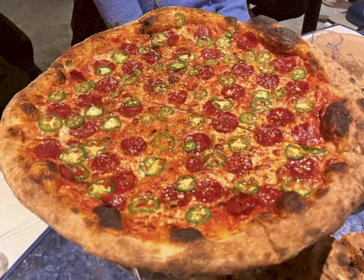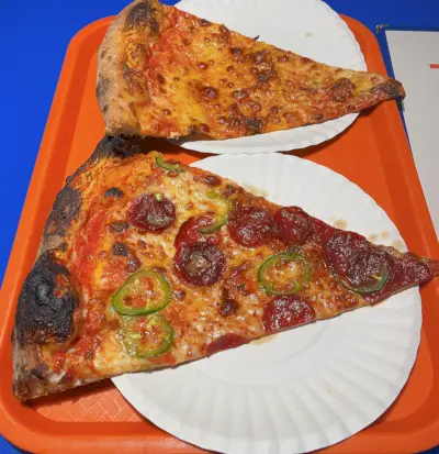 Pimentel loi itse paljon muutosta esimerkillisillä juustopizzaviipaleilla, jotka alun perin maksoivat 3,25 dollaria ja ovat edelleen vain 3,75 dollaria. Tämä on hyvä arvo pizzalle, joka on valmistettu luomutomaateista, luomujauhoista ja täysin luonnollisesta juustosta.Luomujauhomme ovat yleensä kahdesta viikosta kuukauteen vanhoja, hän sanoo. Näin säilytämme kaikki ravintoaineet.