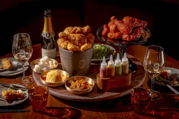 Coqodaq, joka tarjoilee 38 dollarin ämpäri-aterian, joka sisältää consomméa, banchania, kylmiä nuudeleita ja pakastejogurttia, jossa on kauden hedelmiä, antaa korealaisen käänteen paistettuun kanaan. Alkuperäisen Coqodaq-maun lisäksi tarjolla on umami-rikas soijakastike-valkosipulikuorrutus tai mausteinen gochujang-kuorrutus.