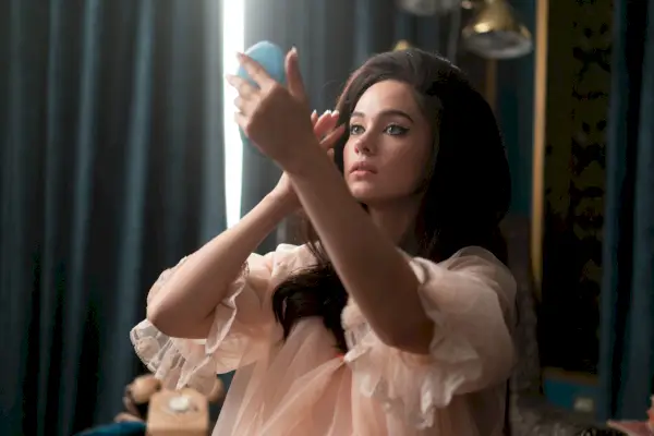 Elvis, josta maailma tietää nyt niin paljon todellisten tutkivien toimittajien kirjoittamista paljastavista kirjoista, joissa on rehellisyyttä, saa teini-ikäisen pursuamaan Priscilla näyttää kastesilmäiseltä ja typerältä. Hän sokeroittaa Elvis-elokuvan hahmoa niin suurella kunnioituksella, että hän irtoaa kuin enkeli, joka on irronnut joulukuusesta. Huonot asiat – LSD, fyysinen pahoinpitely, joka päättyi pahoinpitelyyn, ja huumeriippuvuus, jotka paisuivat Elvistä hauskan talon peilikuvaksi – tulivat myöhemmin. Kun he vihdoin menevät naimisiin ja tytär Lisa Marie on matkalla, hän on niin epävarma, että jättää tämän. Valtavassa mutta alikehittyneessä nimiroolissa Cailee Spaeny , kaunis, mutta kokematon näyttelijä, käy läpi elokuvan transsissa, eikä koskaan rekisteröi paljon minkäänlaisia tunteita.