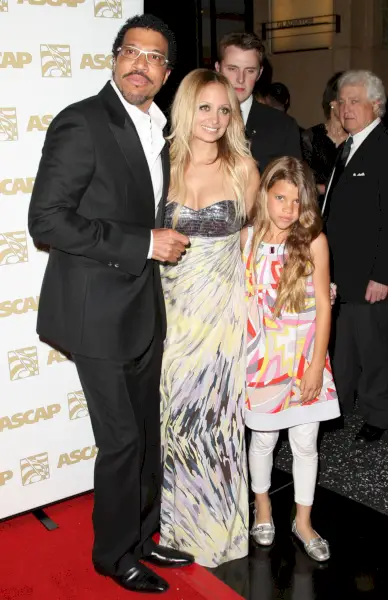 Vähän ennen kihlausta Richie ja Elliot Grainge osallistuivat vuosittaiseen Elton John AIDS Foundation Academy Awards -katselubileeseen koordinoiduissa mustissa kokoonpanoissa. Richie Graingelle se merkitsi tyylikästä Tom Ford -pylväsmekkoa, jota varustettiin minimaalisesti vintage-pussilaukulla ja yksinkertaisilla koruilla.