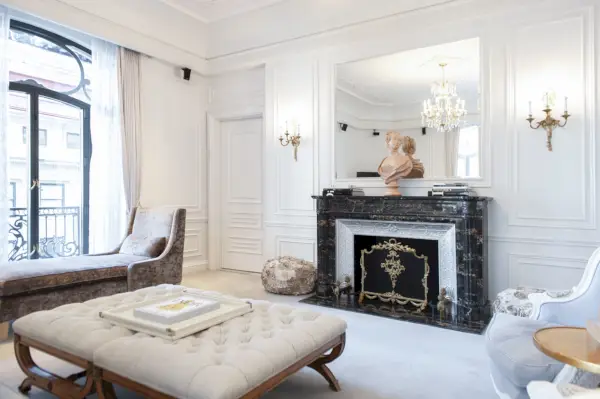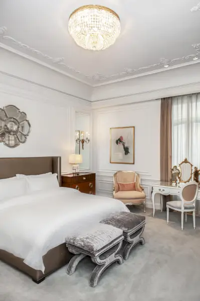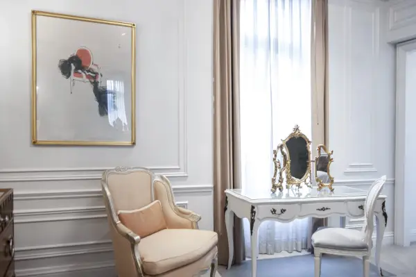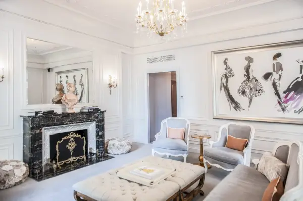 Olohuone on saanut inspiraationsa Diorin Montaigne-pääkonttorista Pariisista, ja siinä on koristeellinen marmoritakka, kaiverretut kruunuliistat ja kimalteleva kristallikruunu sekä alkuperäinen Dior-renderöinti muotikuvittaja Bil Donovanin toimesta ja paljon Dior-suunnittelukirjoja. Päämakuuhuoneessa on oma kimalteleva valaisin, jossa on samettipehmustetut huonekalut, nahkainen pääty ja alaosa.