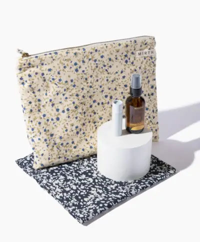 Tämä tyylikäs pieni pussi on täydellinen elämäsi jet-setterille; sen mukana tulee huulirasva, öljy ja bandana, kaikki suloisessa painetussa pussissa.