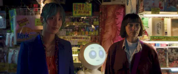 Sunny on melko menestynyt ei-ihminen hahmo, joka on herätetty henkiin käytännössä todellisen robotiikan ja nukketeatterin, Joanna Sotomuran laulusuorituksen ja yksinkertaisen mutta ilmeisen sarjakuvakasvon avulla. Hän on fantasia keinotekoisesta elämästä sekä hyödyllinen peili Suzien hahmon kehitykselle. Hänen vetovoimansa tuotteena on kiistaton, jopa Suzielle, joka pitää roboteista vielä vähemmän kuin ihmisistä. Näiden tuntevien olentojen valmistuksen ja oletettavasti myynnin etiikkaa ei koskaan kyseenalaistaa, vain robottien ohjelmistojen jailbreakin etiikkaa väkivaltaisen tai seksuaalisen käyttäytymisen estojen kiertämiseksi. On mahdollista, että robottityövoimaluokan keksimisellä ei ole ollut merkittävää vaikutusta tulevaisuuden Japanin työmarkkinoihin. (Tämän täysin kritiikittömän kuvauksen tekoälyyn perustuvasta tulevaisuudesta on tuottanut A24, mutta sitä jakelee Apple, joka myisi sinulle Sunnyn huomenna, jos voisi.)