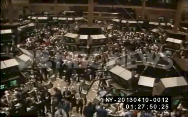 Tässä kuvamateriaalissa termi osakemarkkinat on kuitenkin todellinen paikka, jossa on Lähi-idän soukin ulkonäkö ja tuntuma, täynnä miehiä, joilla on huonosti istuvia värikkäitä takkeja ja lattiaa roskaavia tilauslipsejä. Pörssi on nykyään käytännössä aavekaupunki, mutta voimme katsella sitä pakattuna 1980-luvun loistoon, kun NYSE:n lattian monitorit ja muualla Wall Streetin kaupankäyntipöydät vilkkuvat vihreitä numeroita neljänneksissä, kahdeksasissa ja 16:sissa, jäänteitä siitä, kuinka espanjalaiset keskiaikaiset kauppiaat laskivat kultaansa. kolikoita. Kaikilla noilla koneilla on sama laskentateho kuin tällä hetkellä lapsen taskussa. Ja kaikki ne miehet (ja toisinaan naiset), jotka käyttävät kaikkia noita pukuja ja huutavat kaikkia noita käskyjä, ovat nyt tarpeettomia, korvattu siruilla ja langoilla. Silti he ovat täällä meitä varten ihailemaan heidän adrenaliiniruiskujaan tietämättä, että vuoden 1987 romahdus tuhoaa heidät taloudellisesti ja lähestyvä teknologinen vallankumous pyyhkii pois heidän olemassaolonsa tarkoituksen.