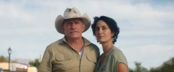 Thomas Haden Church ja Carrie-Anne Moss elokuvassa Accidental Texan.Roadside Attractionsin luvalla